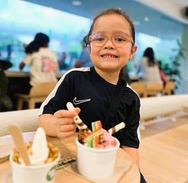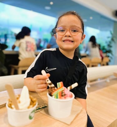 A joyful 7-year-old who paints her dreams and acts with all her heart.